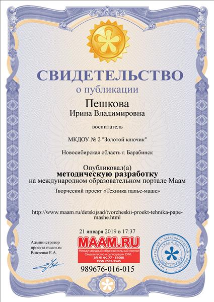 Межрегиональный сборник научно-методических статей «Конструирование образовательных пространств: теория и практика». 2020. «Развитие творческих способностей дошкольников через использование нетрадиционной техники рисования» [Электронный ресурс] // 2020. URL: