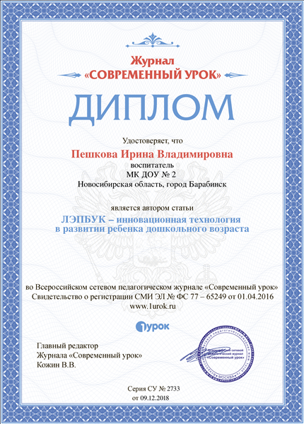 Статья "Лэпбук - инновационная тенология в развитии ребенка дошкольного возраста" // 2018. 0 c.